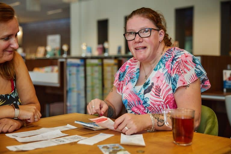 In de bibliotheek hangt een gezellige sfeer. Mensen lopen rond op zoek naar een mooi boek of komen hun uitgelezen boek weer inleveren. In een afgeschermde hoek…