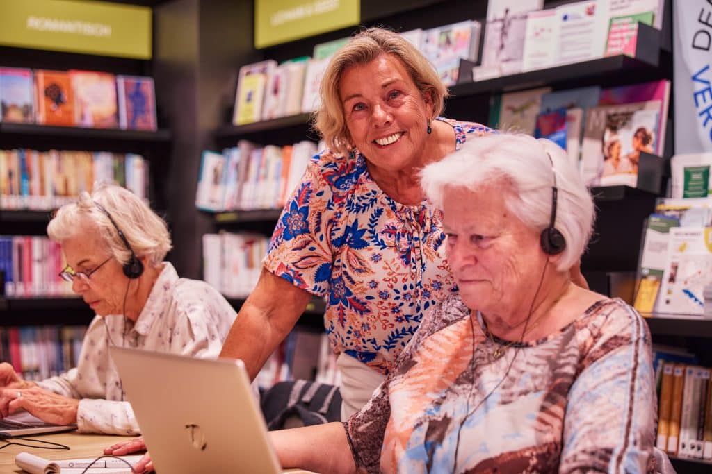 In de bibliotheek hangt een gezellige sfeer. Mensen lopen rond op zoek naar een mooi boek of komen hun uitgelezen boek weer inleveren. In een afgeschermde hoek…